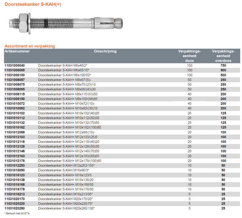 Technitec Doorsteekankers S-KAH(+)