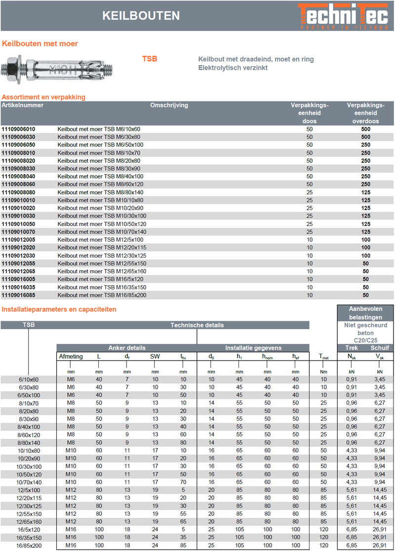 Technitec stut bolt is de originele keilbout met moer uit de professionele range met 4 delige expansie.