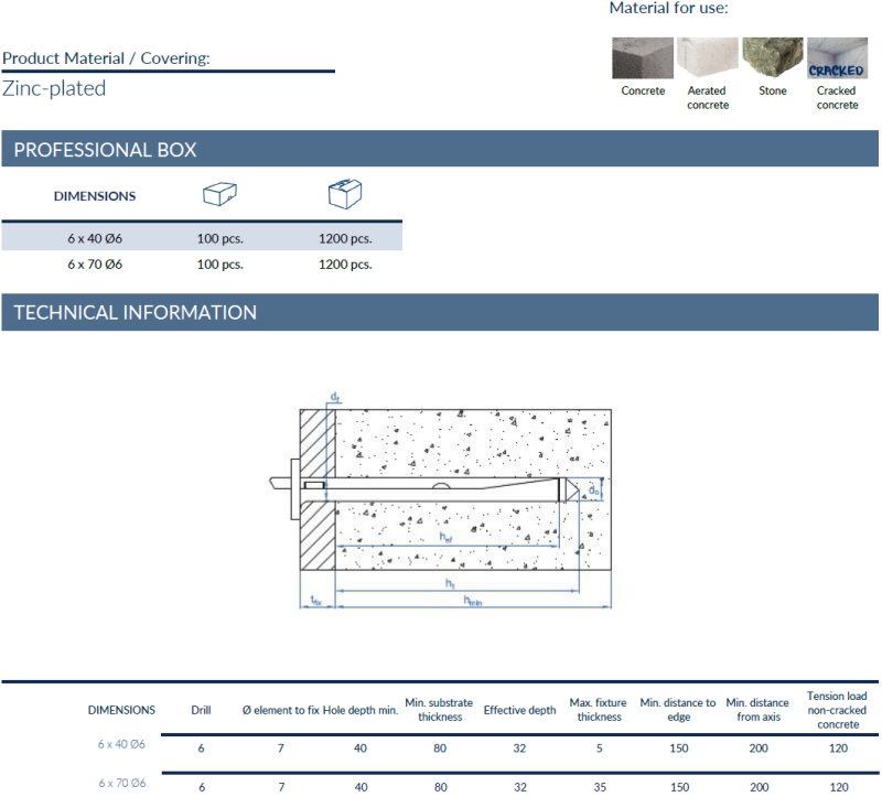 Dit anker is geschikt voor een efficiënte bevestiging op de vloer, wand en plafond.